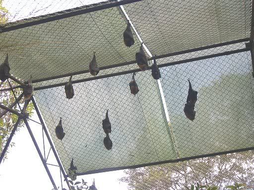 Flying Foxes (basically an Aussie version of bats) hanging from their enclosure