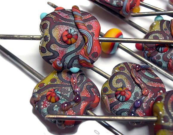 . . . at my newest set of beads. These will be up on eBay tomorrow morning. This is going to be a huge set of beads for me - something like 30 beads all up. There's a combination of squeezed beads and about 20 matching rounds, so if you like the sneak peek, you might want to remember to pop back tomorrow to catch the auction. Okey dokey.. that's about all out of me for one day. Catch you tomorrow!
